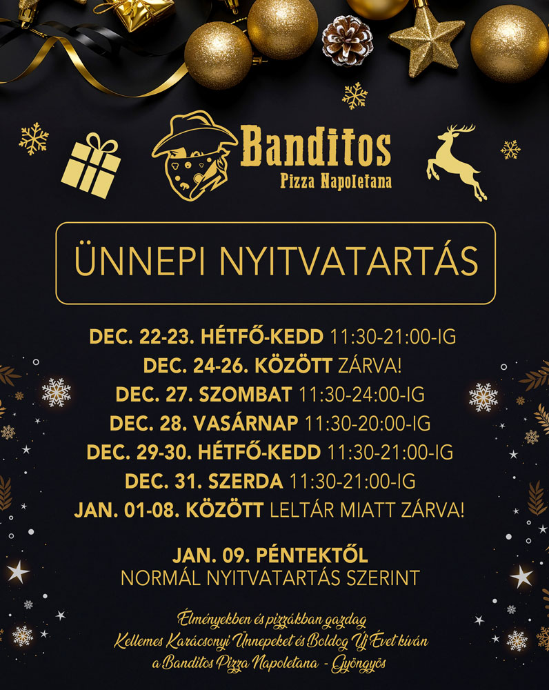 #évvége #nyitvatartás #ünnepek #karácsony #szilveszter #köszönjük #búék #BanditosGyöngyös #PizzaNapoletana #nápolyi #pizza #étterem #terasz #olaszétterem #nápolyipizza #gyöngyös #mátra